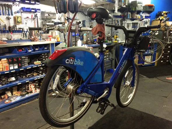 Off with its head: Kevin from City Bikes removes the original seat on Citi Bike.