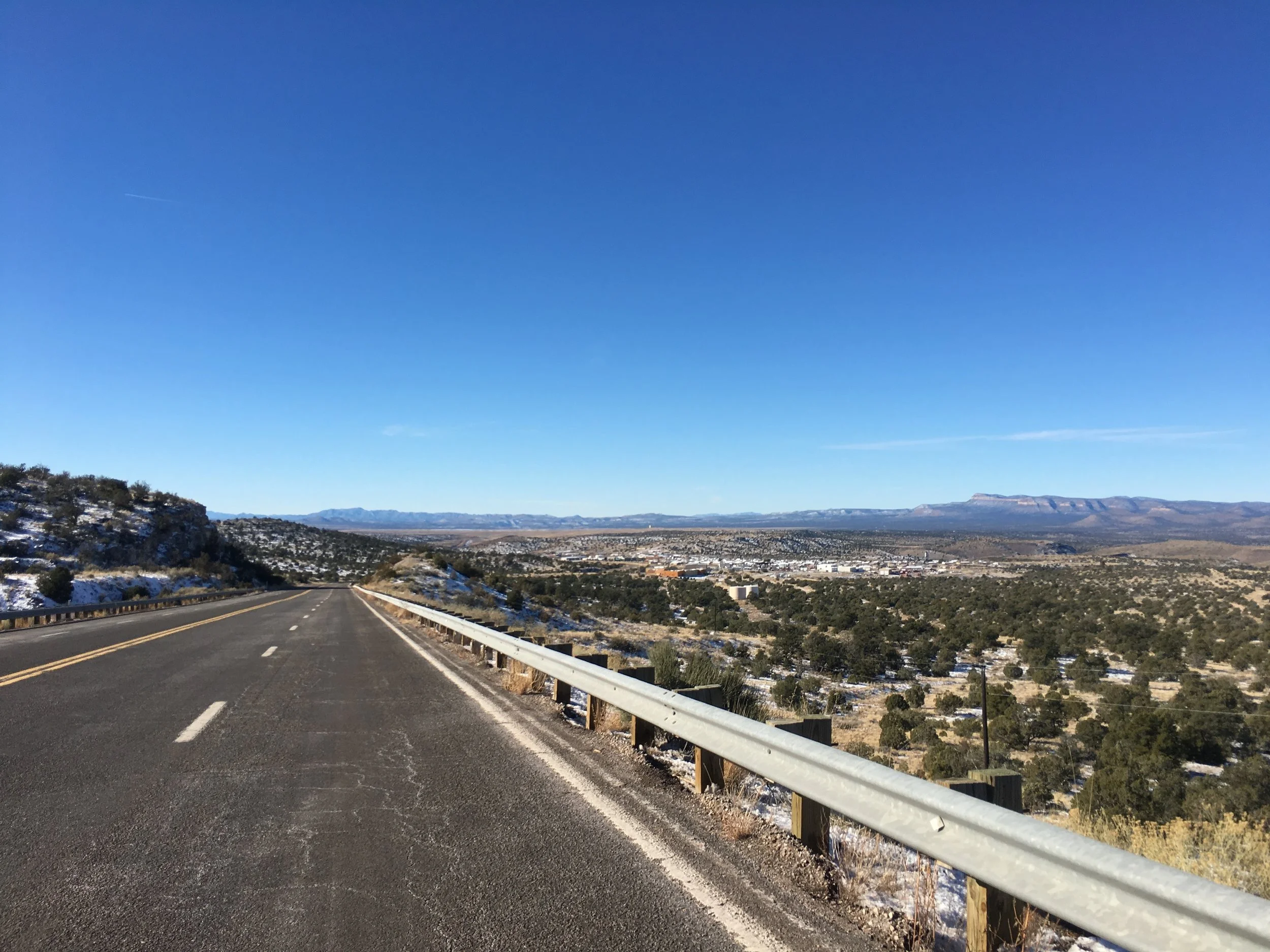 Back on the road, the sun warms me enough to shed the socks on my hands as makeshift gloves. Today’s ride is partly psychological. With each mile I’m losing elevation and gaining temperature. Every foot forward matters.